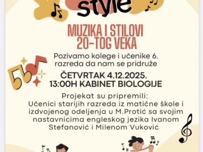 У нашој школи одржан час пројектне наставе из енглеског језика под називом ,,Music and styles in the 20th century“ . Ученици старијих... Pročitaj više